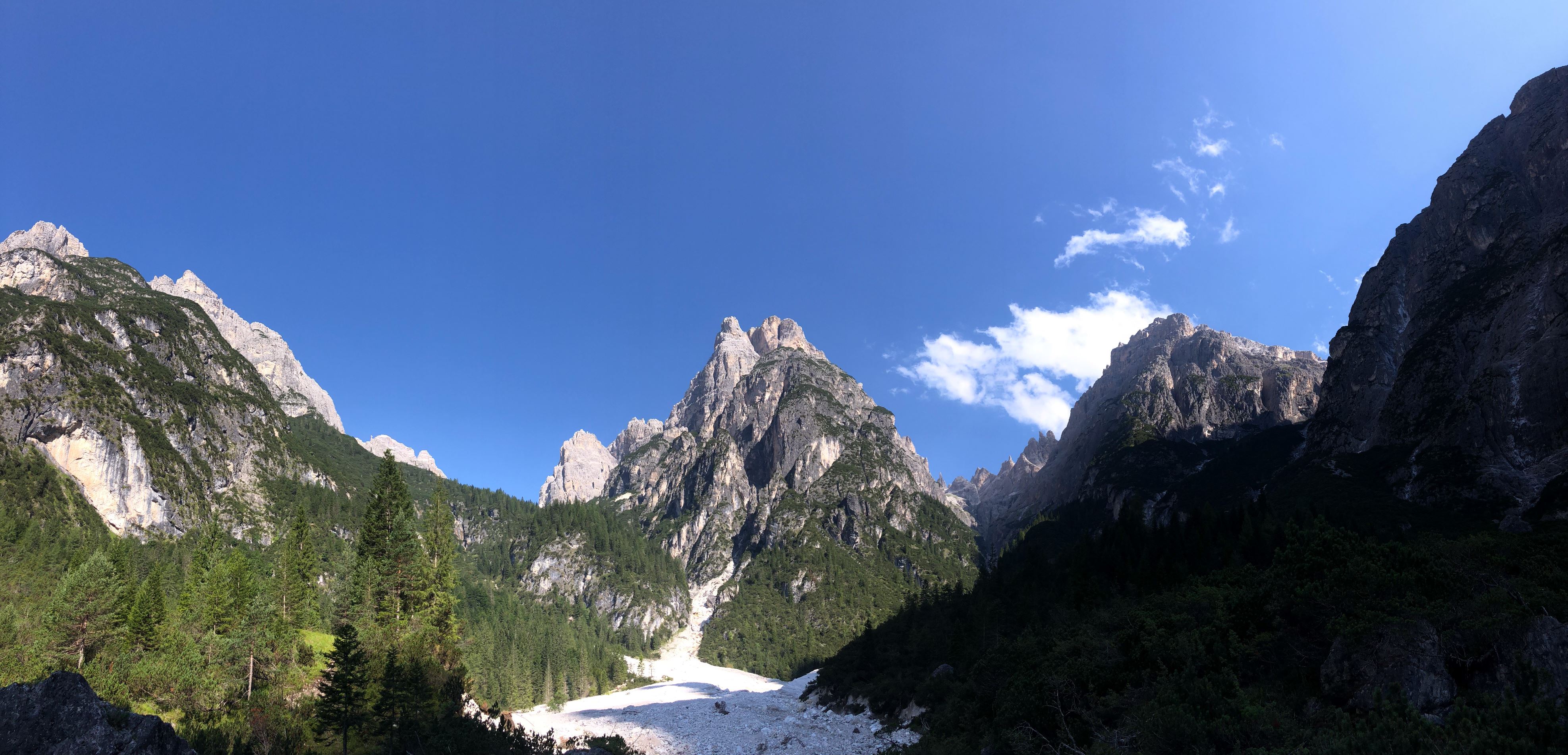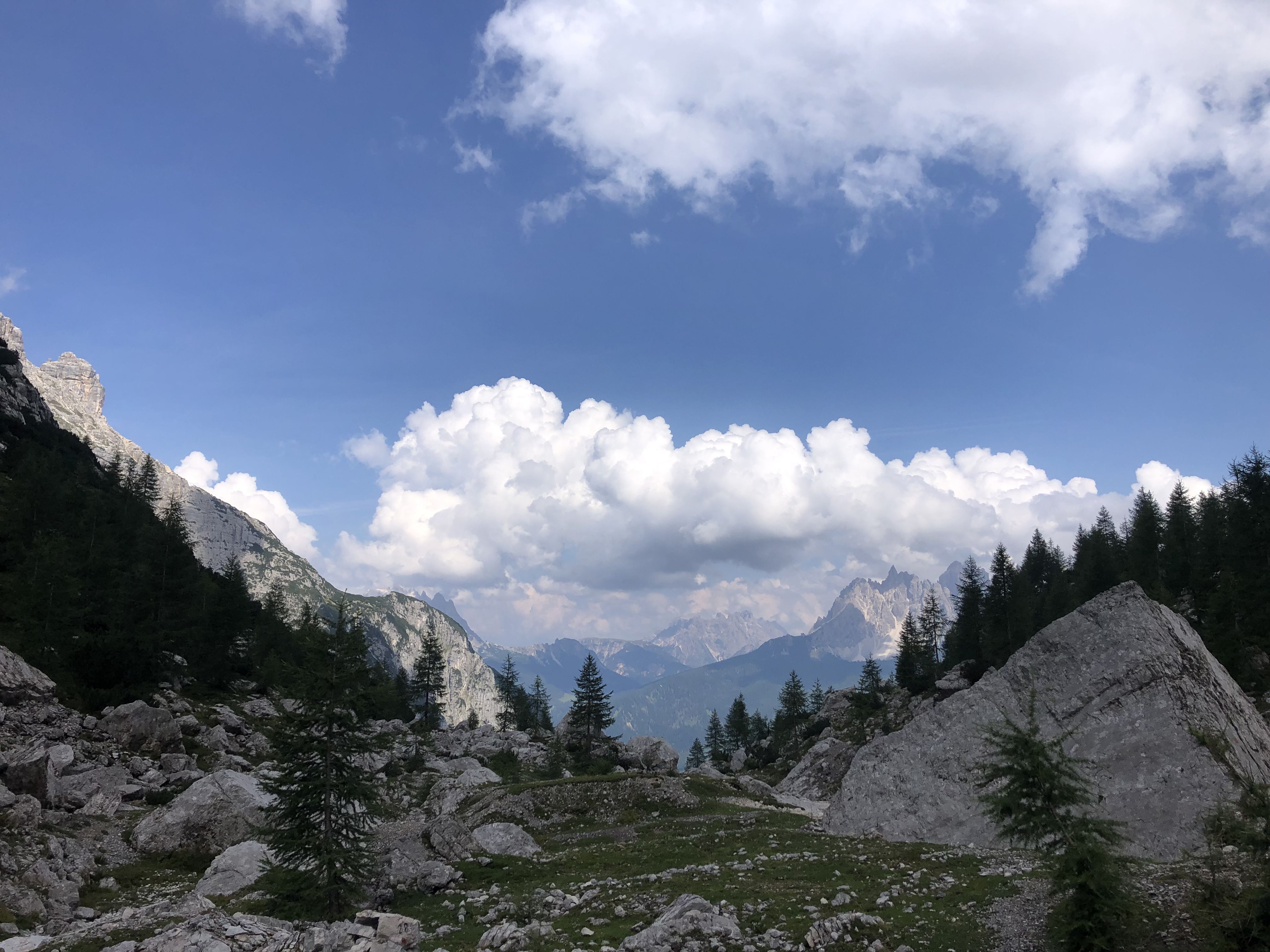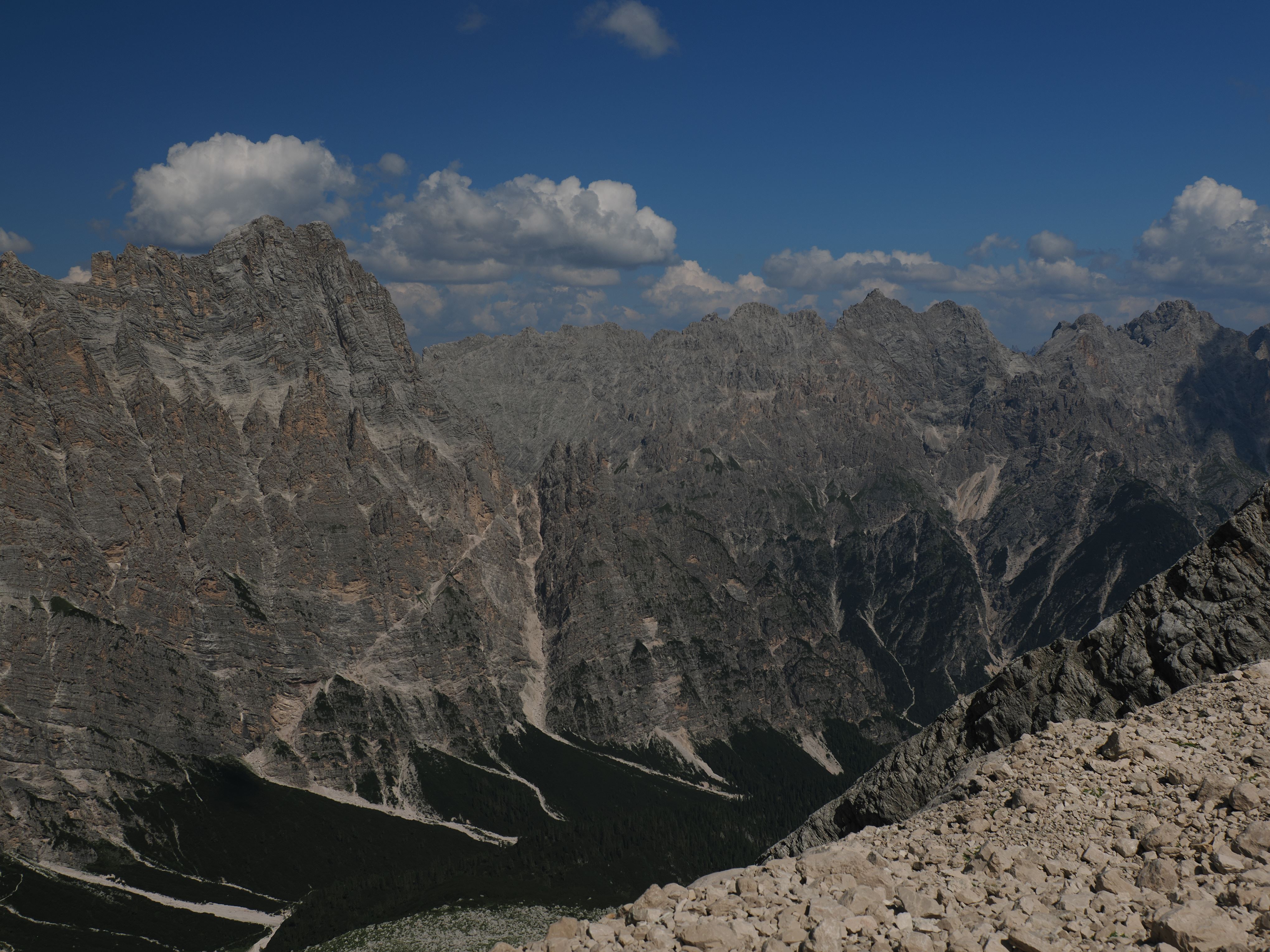 We slept like rocks in an otherwise empty room. The past two days had been longer and harder than any in the preceeding three weeks, so the good night's sleep was welcome. Today would be the real challenge. We would begin our passge of Marmarole: a series of peaks that rise to nearly 3,000 meters and are the soul of the Alta Via 5. The path, known as the Strada Sanmarchi, is wild and complex, and the terrain requires concentration - in places extremely exposed and unequipped . Knowing we would need a good breakfast, we waited for a real one, forgoing the snacks laid out for the early birds and brooded over the possibility of afternoon storms.