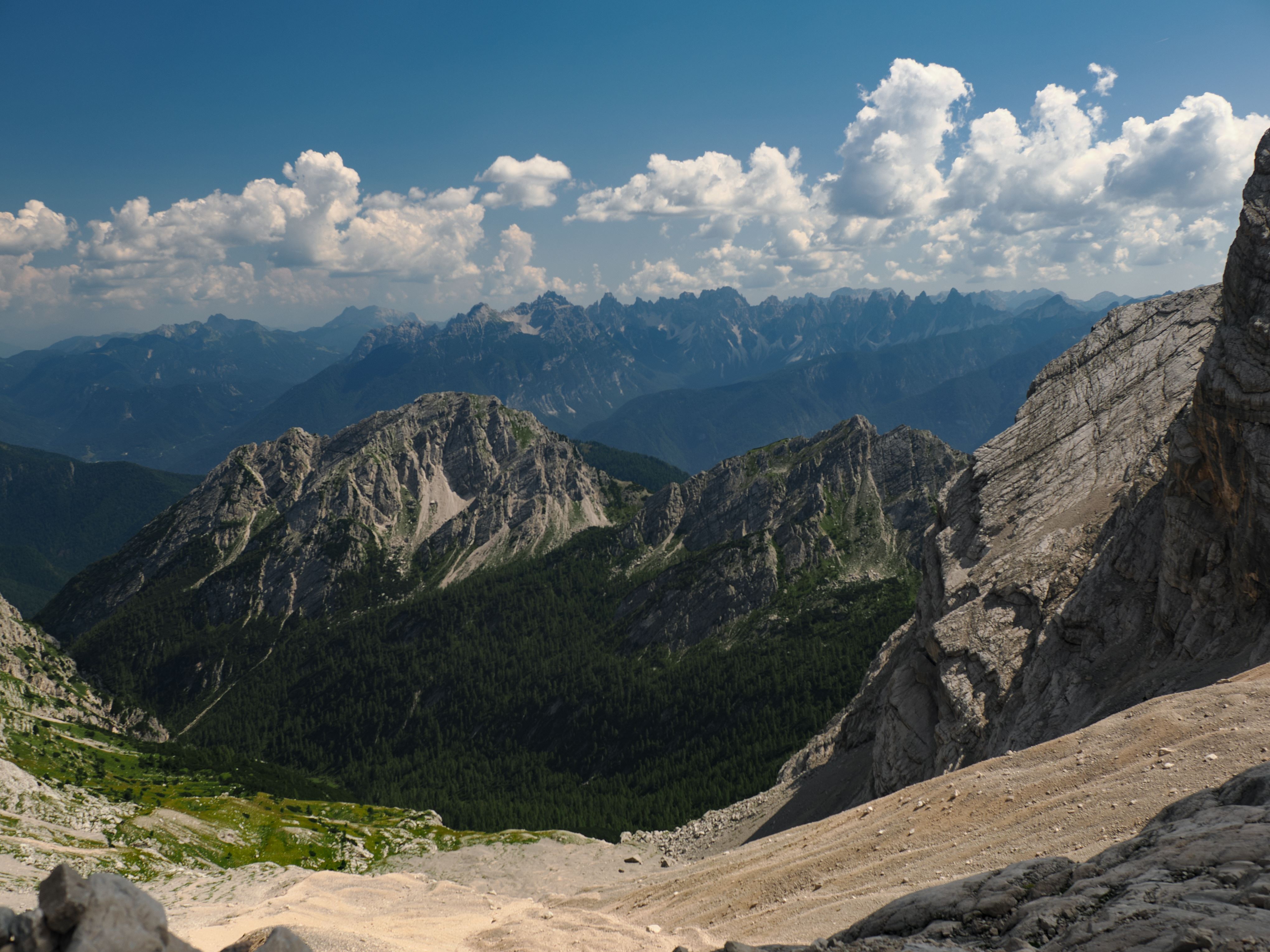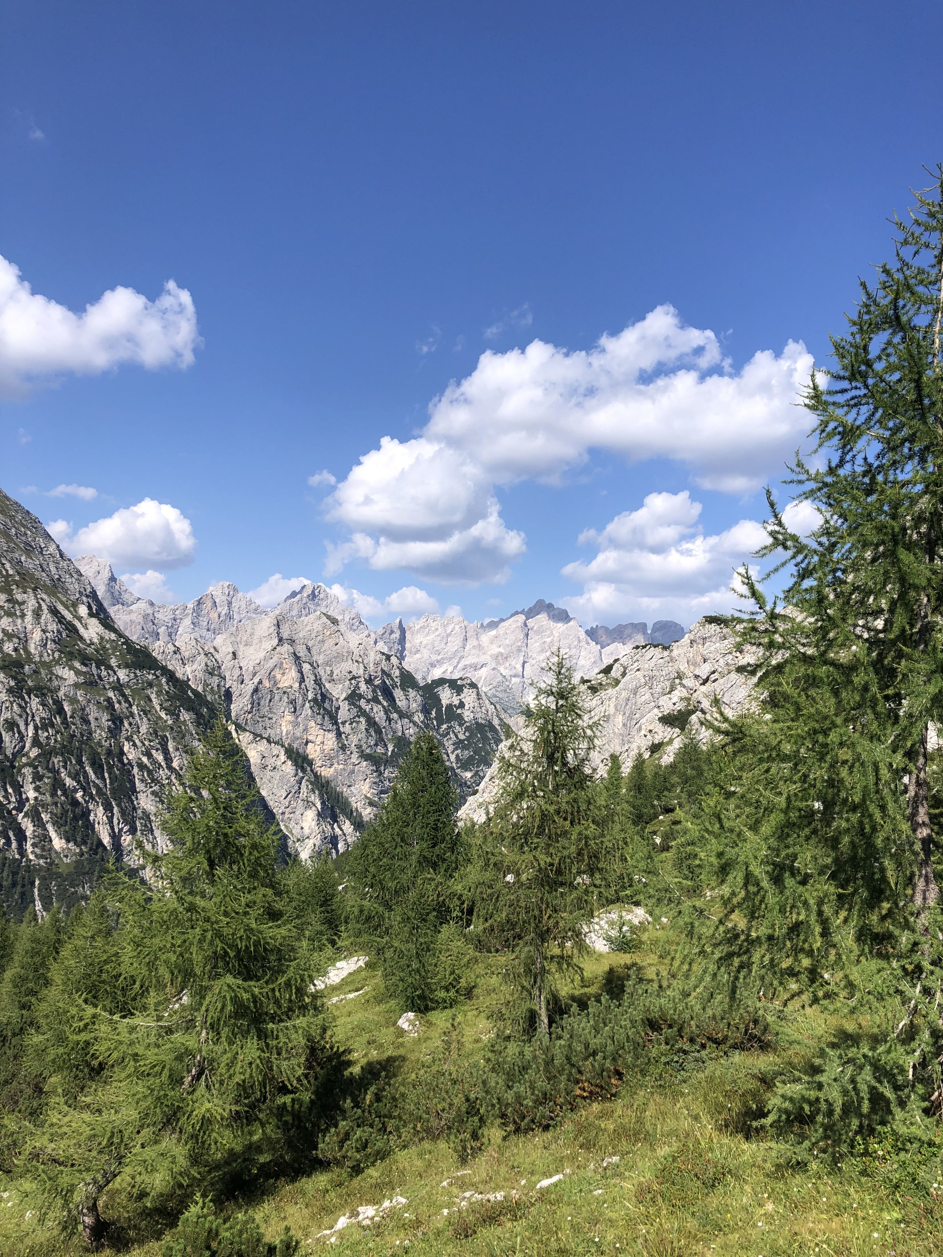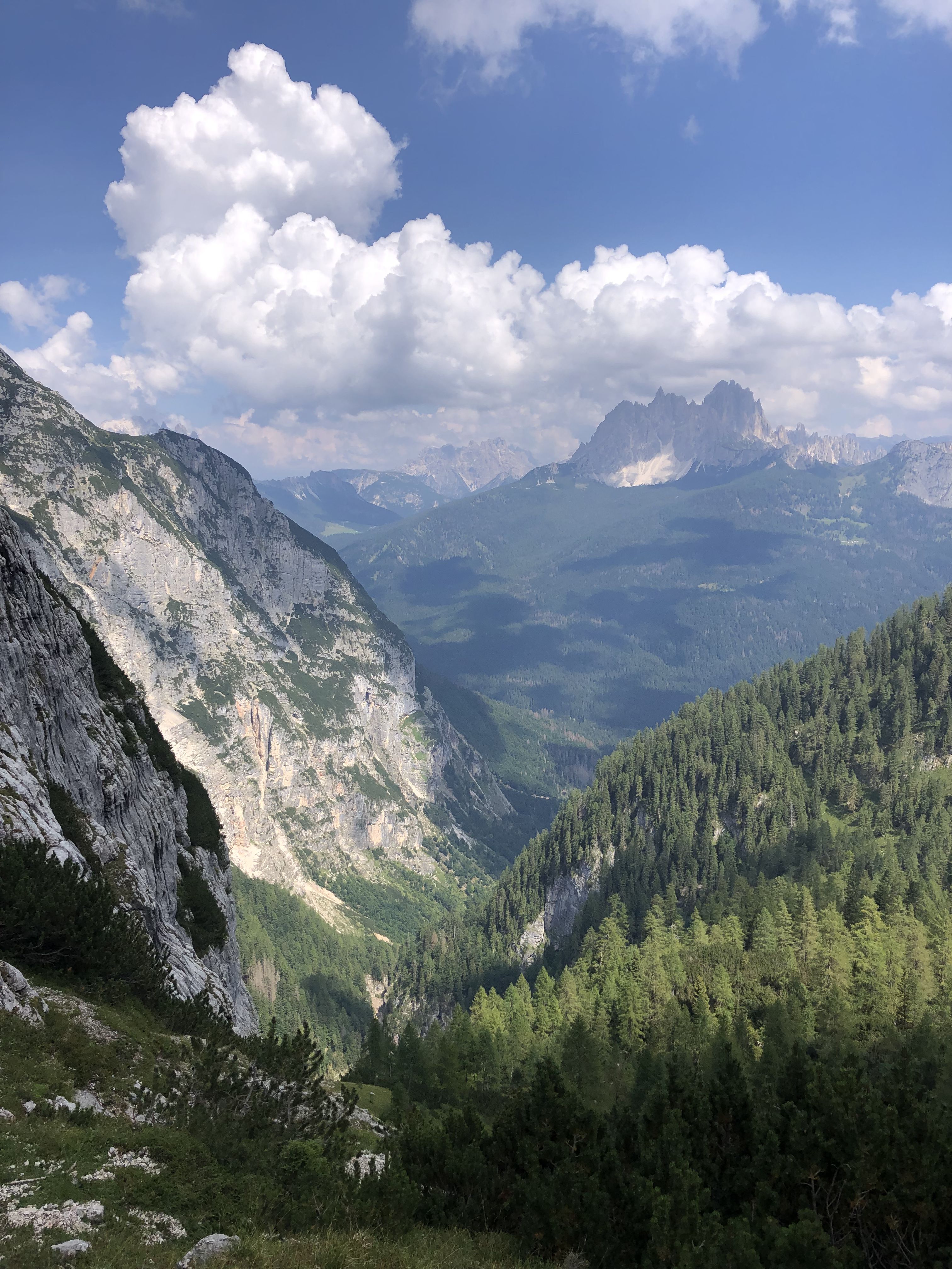 We slept like rocks in an otherwise empty room. The past two days had been longer and harder than any in the preceeding three weeks, so the good night's sleep was welcome. Today would be the real challenge. We would begin our passge of Marmarole: a series of peaks that rise to nearly 3,000 meters and are the soul of the Alta Via 5. The path, known as the Strada Sanmarchi, is wild and complex, and the terrain requires concentration - in places extremely exposed and unequipped . Knowing we would need a good breakfast, we waited for a real one, forgoing the snacks laid out for the early birds and brooded over the possibility of afternoon storms.