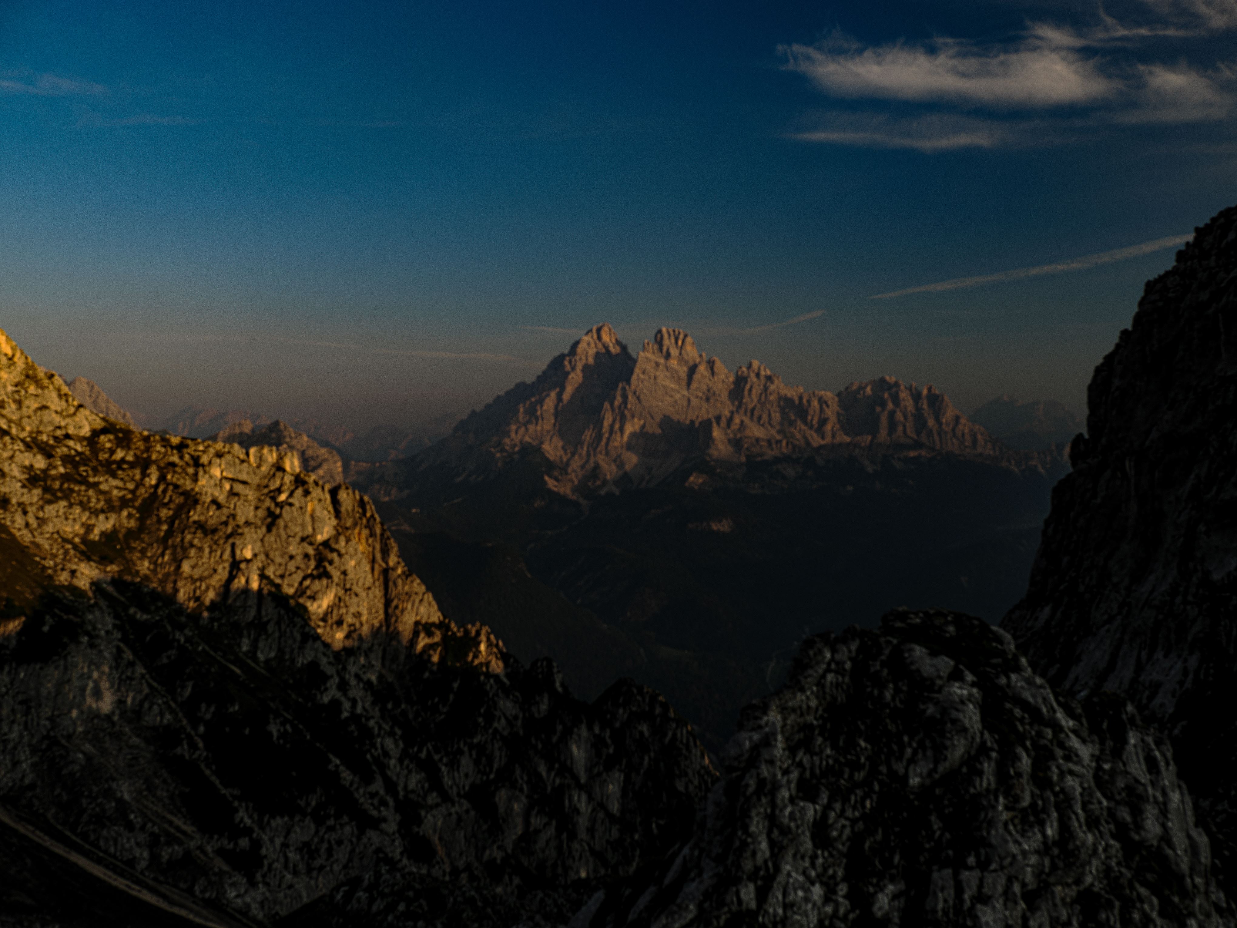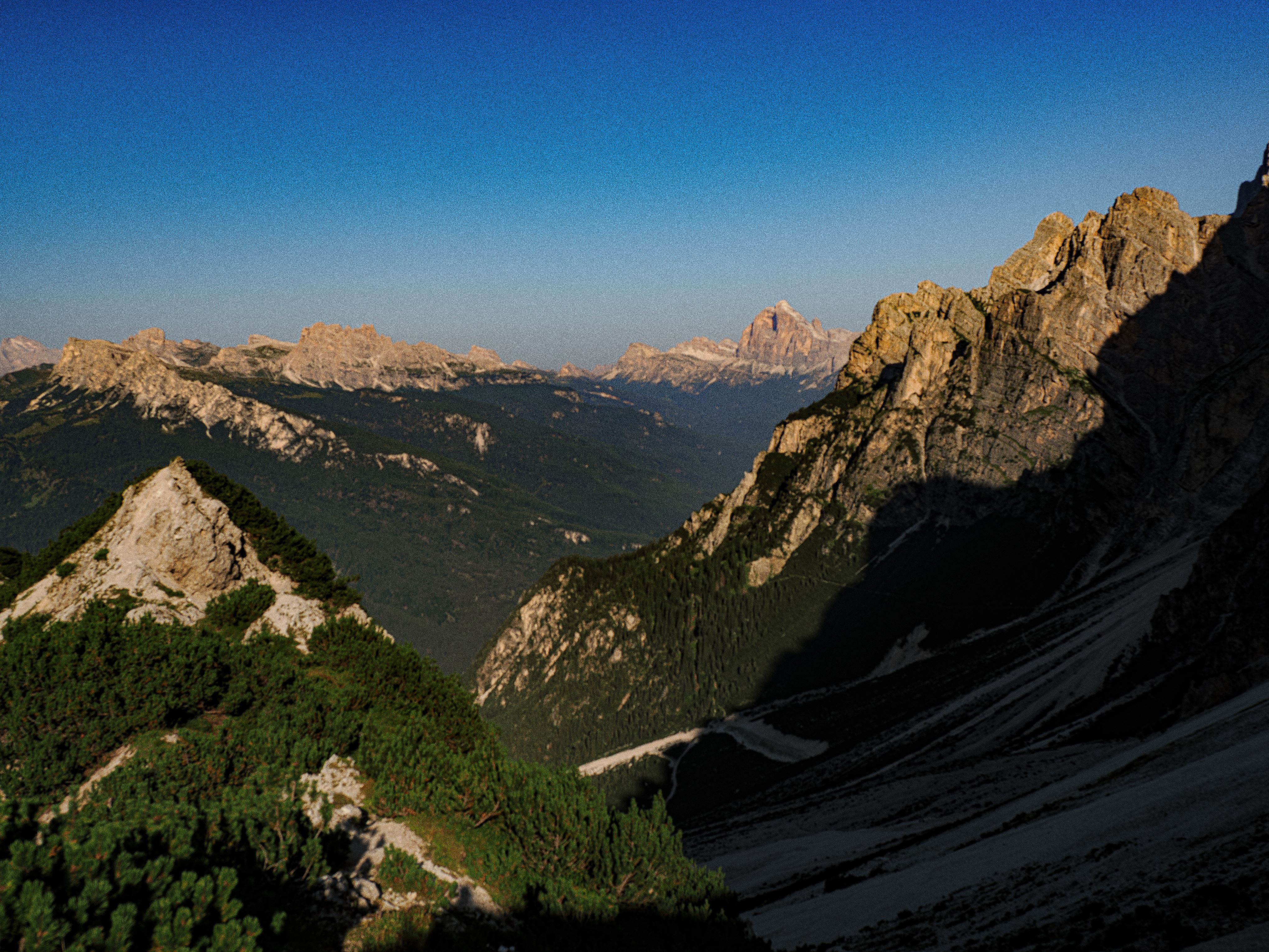 In less than an hour we had left the crowds behind, and, being mid-afternoon, most of the walkers were headed the other way. Many of the Alta Via's begin with this modest, yet tantalyzing approach: up a pleasant valley, or past a pretty lake before an ascent that leaves you breathless with the spectacle of the Dolomites. Ours was Val Fiscalina, which soon climbed steeply up the eastern flanks of the Tre Scarperi until meeting the walls of Croda dei Toni which towered at the head of the valley. We took a quick break at Rifugio Comici before finishing our 1,300 meter climb to Forcella Giralba which separates the Val Pusteria, who's waters flow west into the Adige, from the Val D'Ansiei, which drains east into the Piave. These rivers bound the central section of the Dolomites, home to five of the six great Alta Vias. It speaks to the marvelous complexity of these mountains that the neighboring Alta Via 4 was but a few kilometers to the west and though sharing sides of the same mountain (Tre Scarperi), we were looking across a completely different landscape. Here the prayer flags were fluttering in the last rays of the afternoon sun. We marveled at the surroundings: the immense Val Giralba that marked tomorrow's descent to the river below and the expanse of mountains beyond. In the shadows, only a little way below, was Rifugio Carducci and the end of our day.