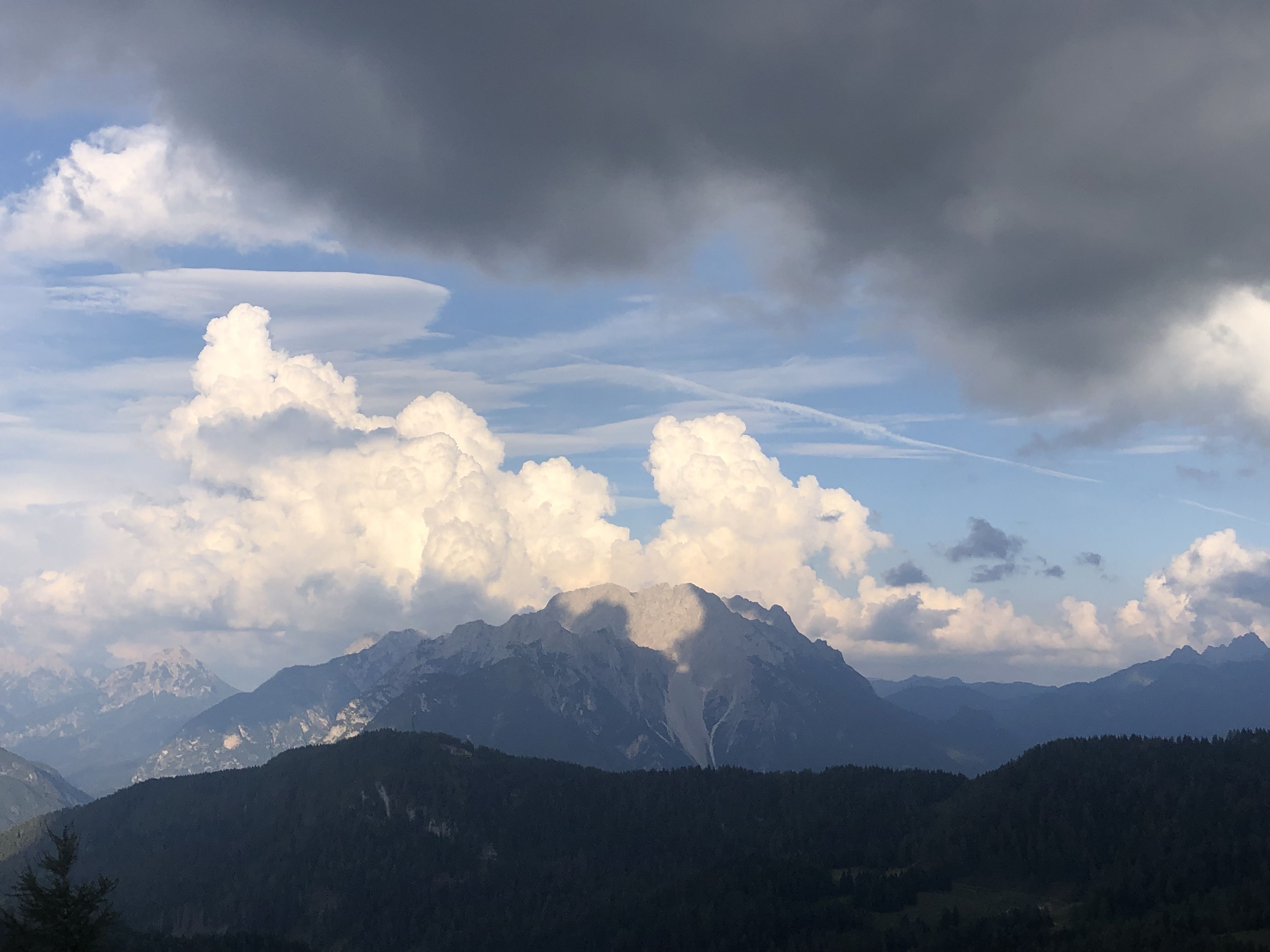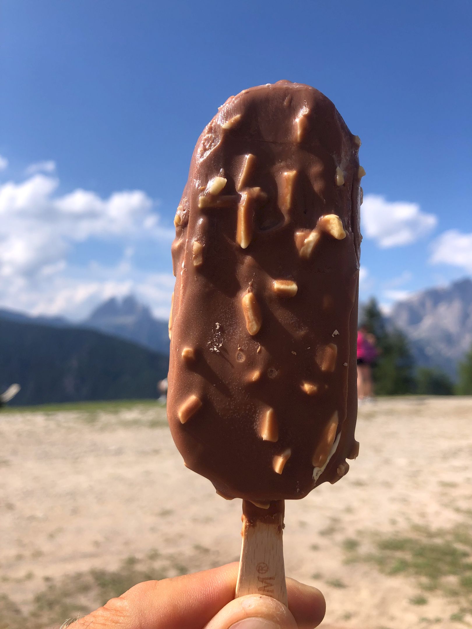 When in doubt, have some ice cream. At the top of the little ski area was a rifugio and a sweeping view to the north. There was also ice cream and coke. With my blood glucose back to its brain-buzzing level, we wandered along wooded hillsides and forest roads, forsaking the standard route in the valley below for this loftier alternative. Claudio had made a good choice for we wandered in solitude for several kilometers. Eventually we reached a crest and a series of large meadows with Monte Ciarido above, the first in the long, arcing chain of peaks of Marmarole (which we had glimpsed from Val Giralba). As we walked the last few kilometers to the rifugio, my friend told me of the visits he had made to these meadows, the picnics and family gatherings, and I understood why we had come this way. We finished our 1,100 meters to Rifugio Ciaréido and sat down for a beer. To the southeast lay Monte Cridola and off its shoulder, on the distant skyline, the phalanx of towers known as Spalti de Torro . With a little imagination I thought I could make out the location of Rifugio Tita Barba, my fourth stop along the AV6 just two weeks before. There wasn't enough water for the showers, so we freshened-up at the sink and sat down for another beer in the dining room to wait for dinner.
