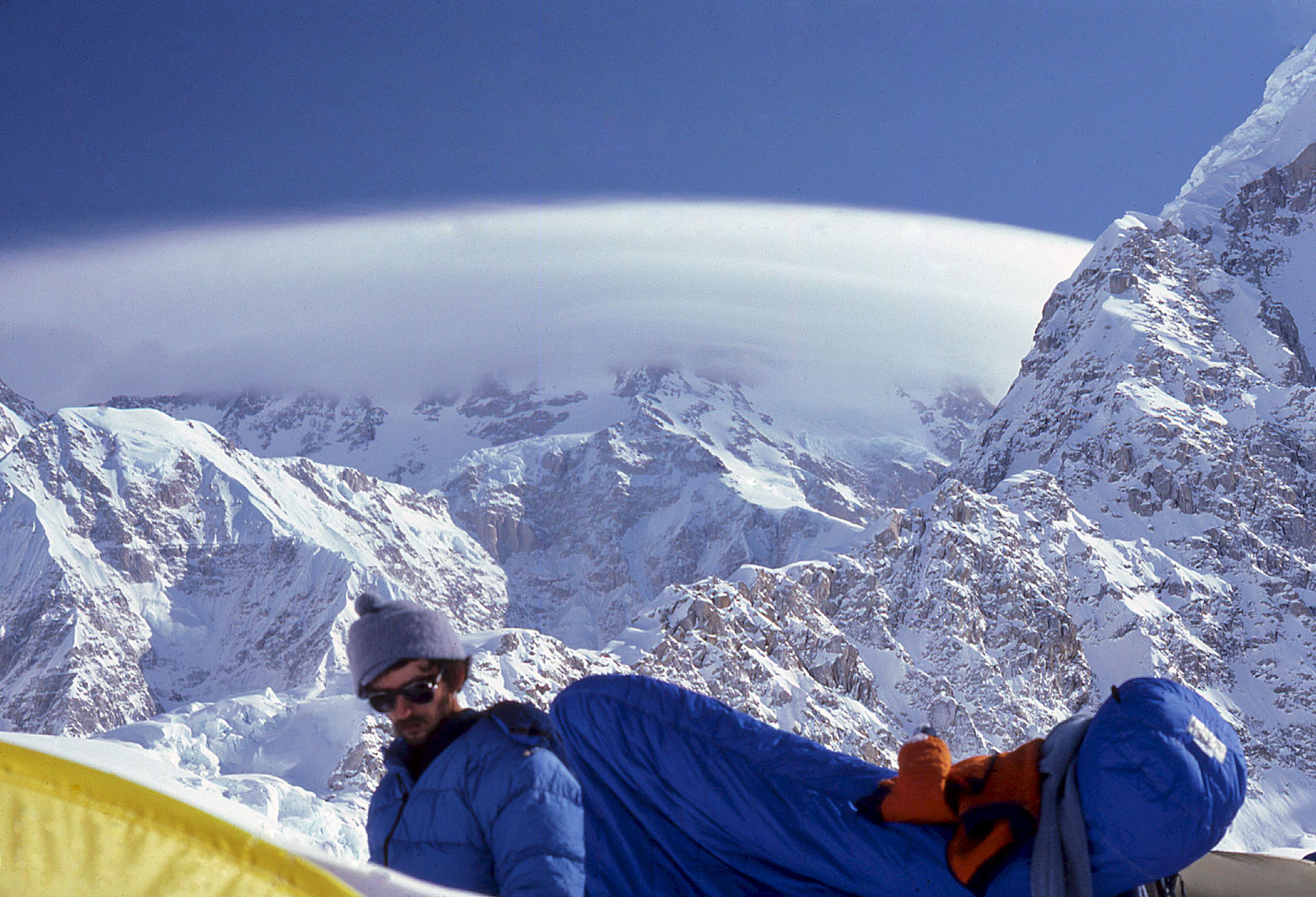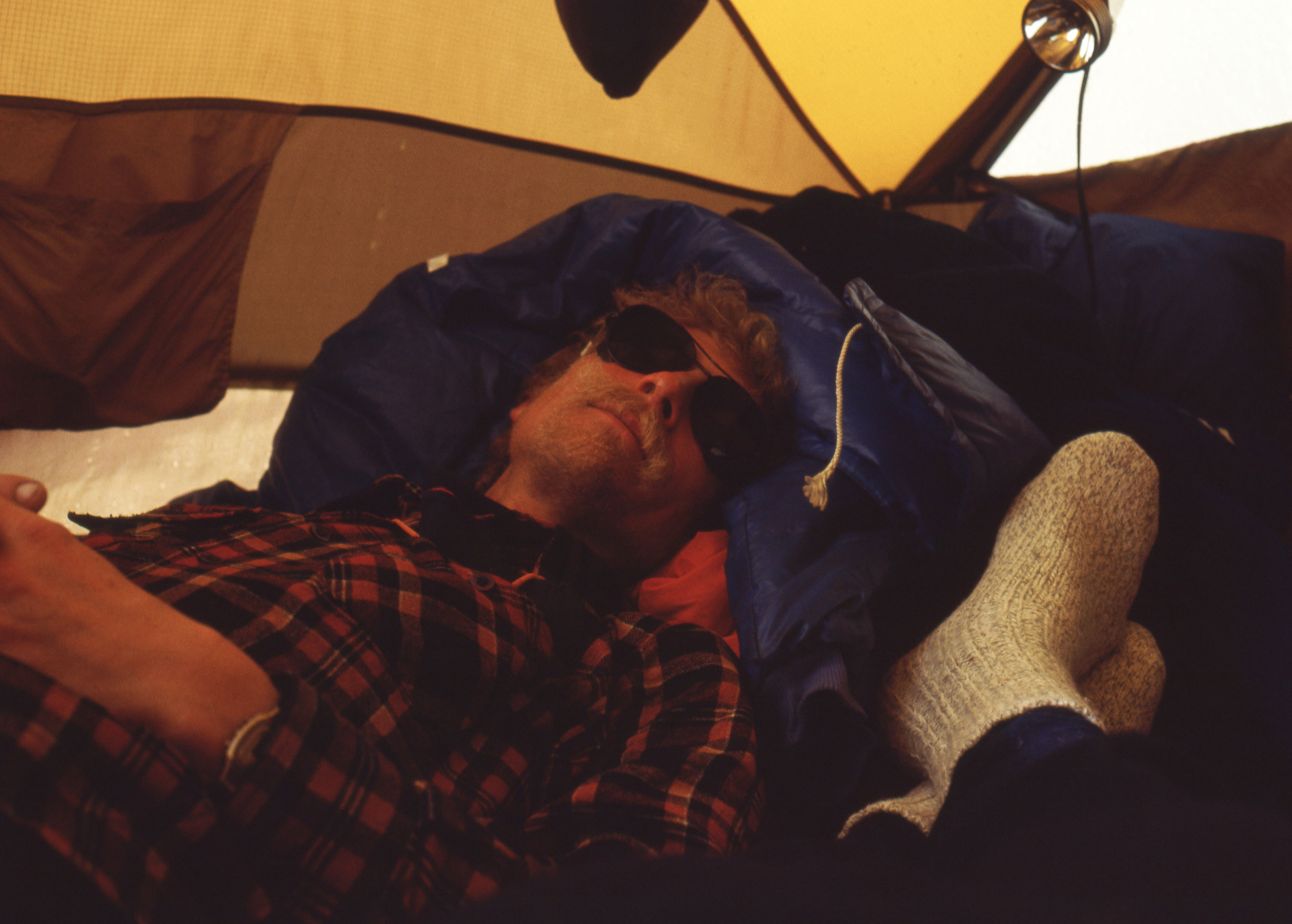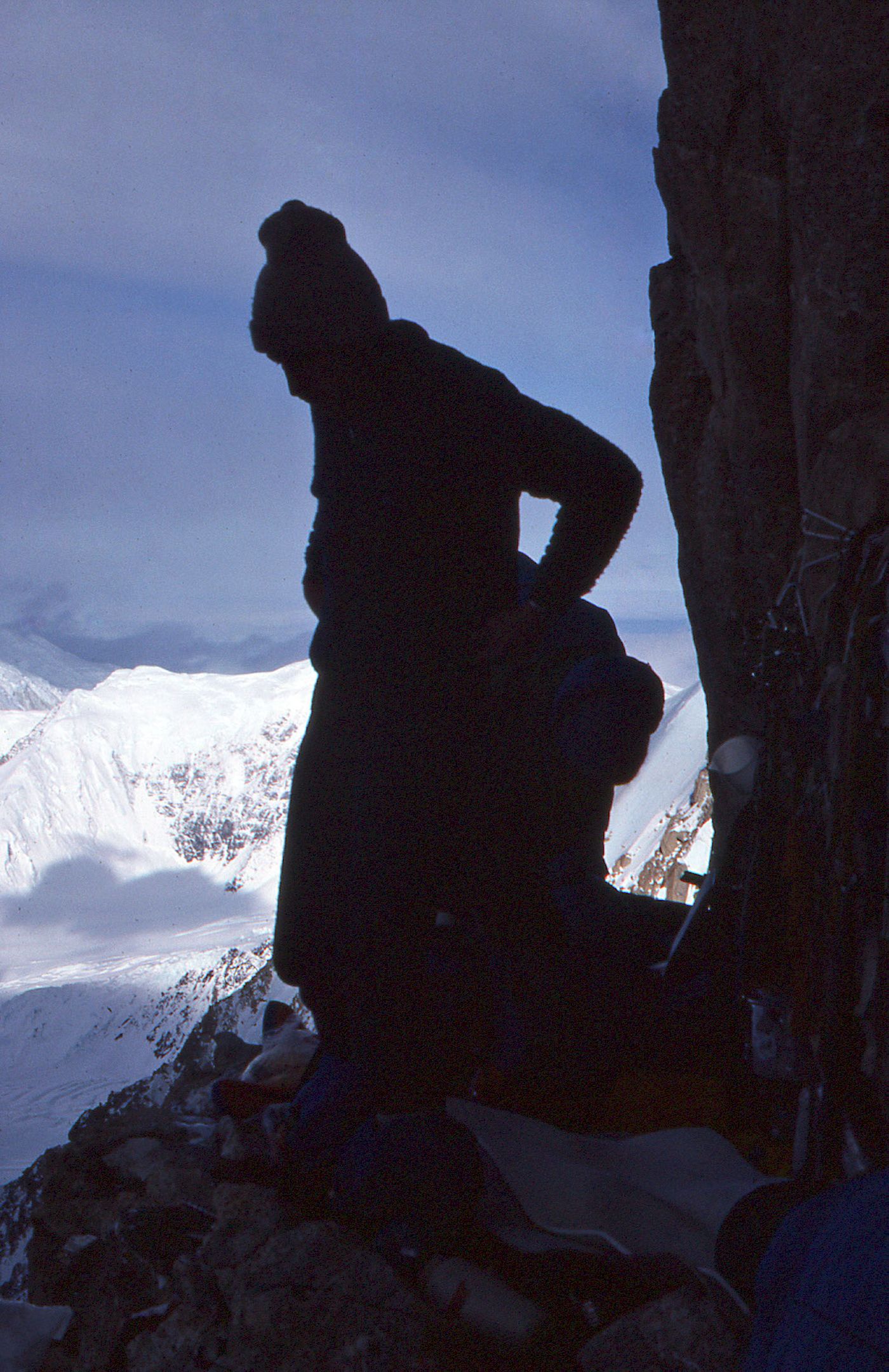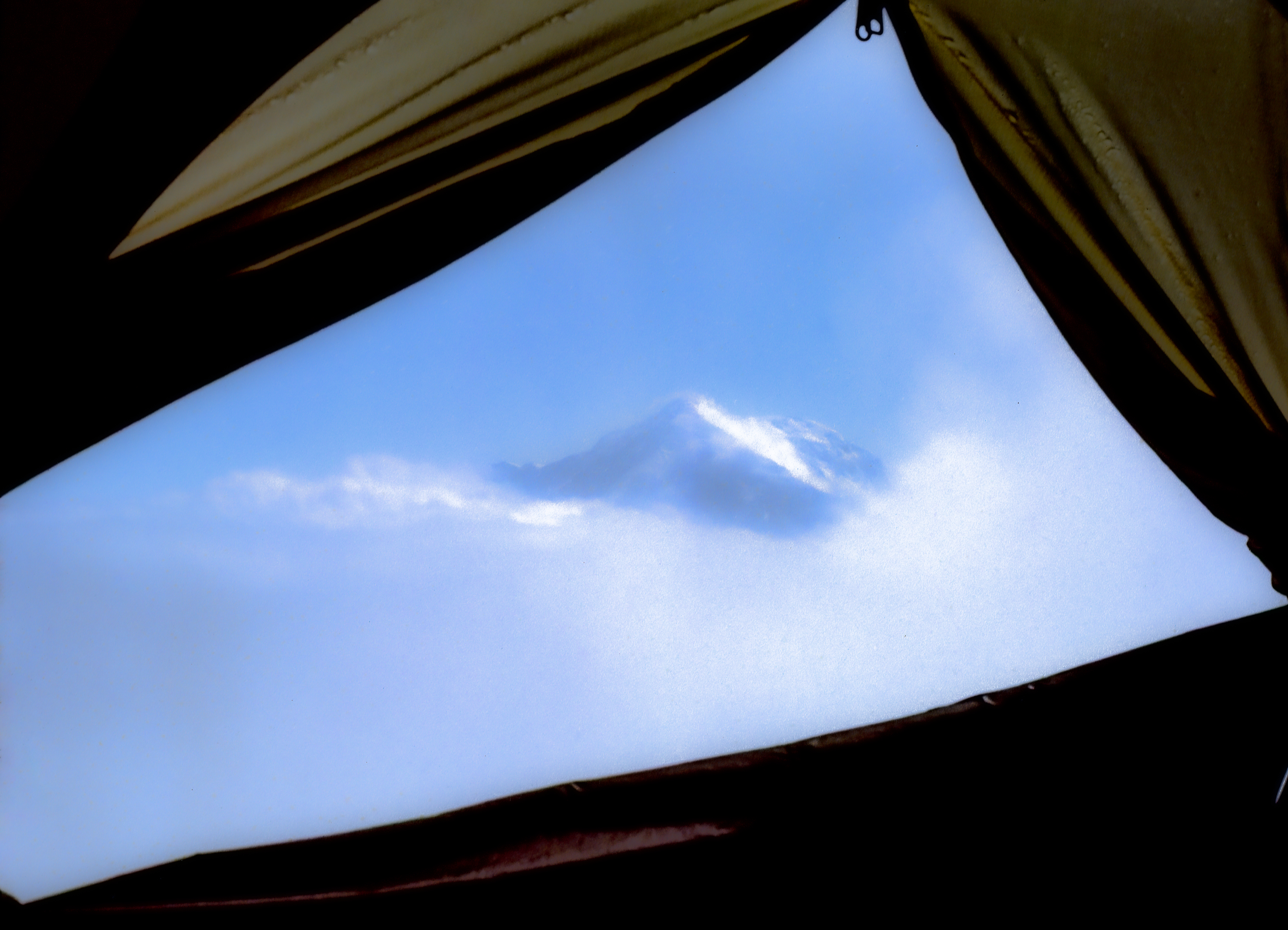 Three philosophers. Hugh, Ren and Keith waiting out the storm - 18,500 ft.