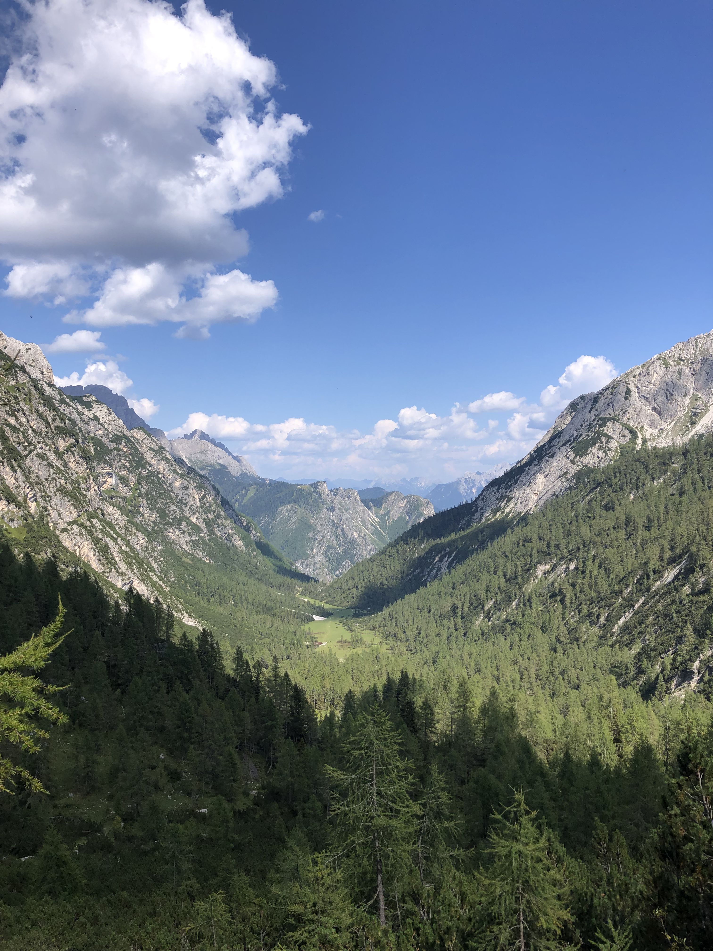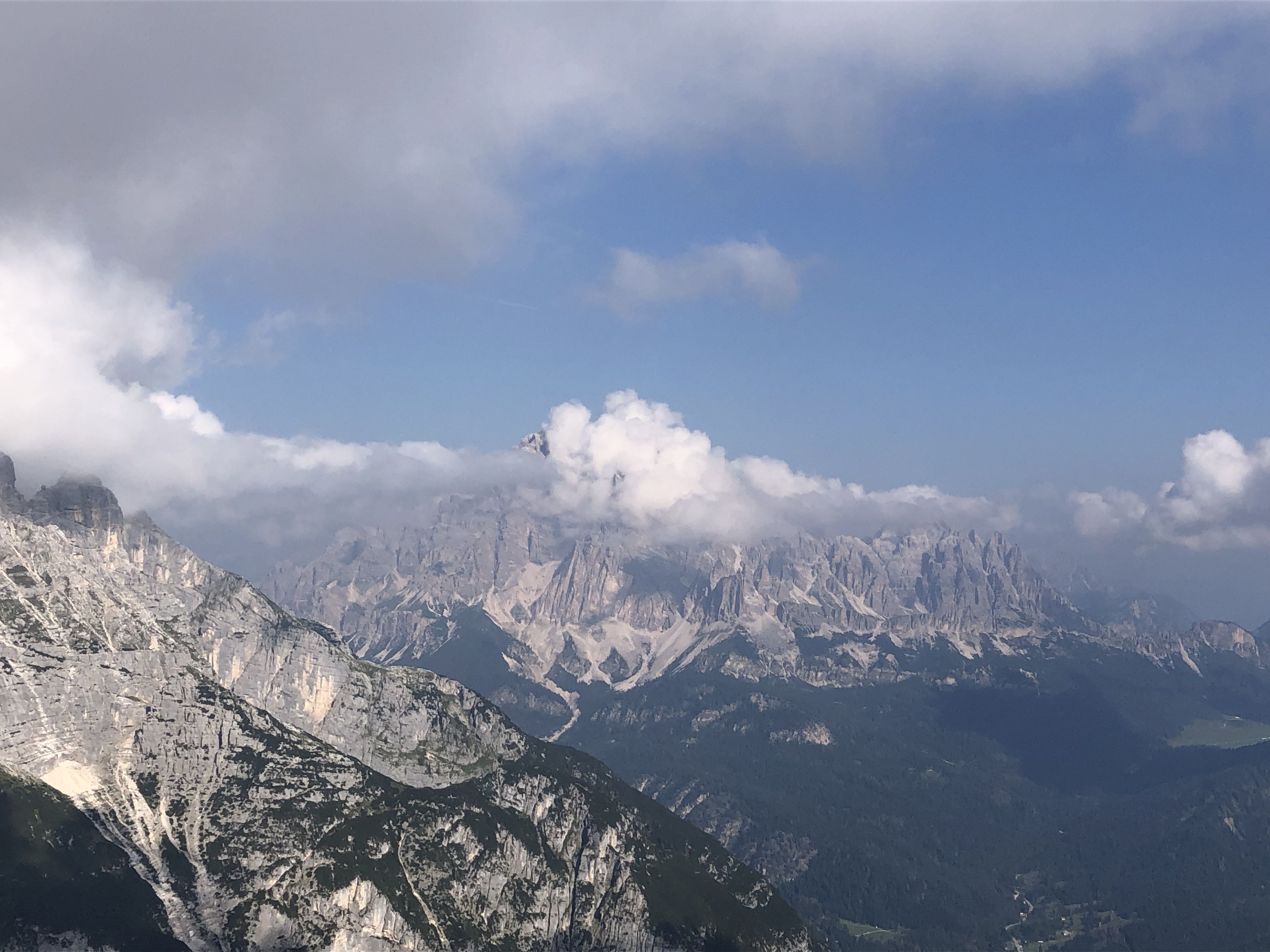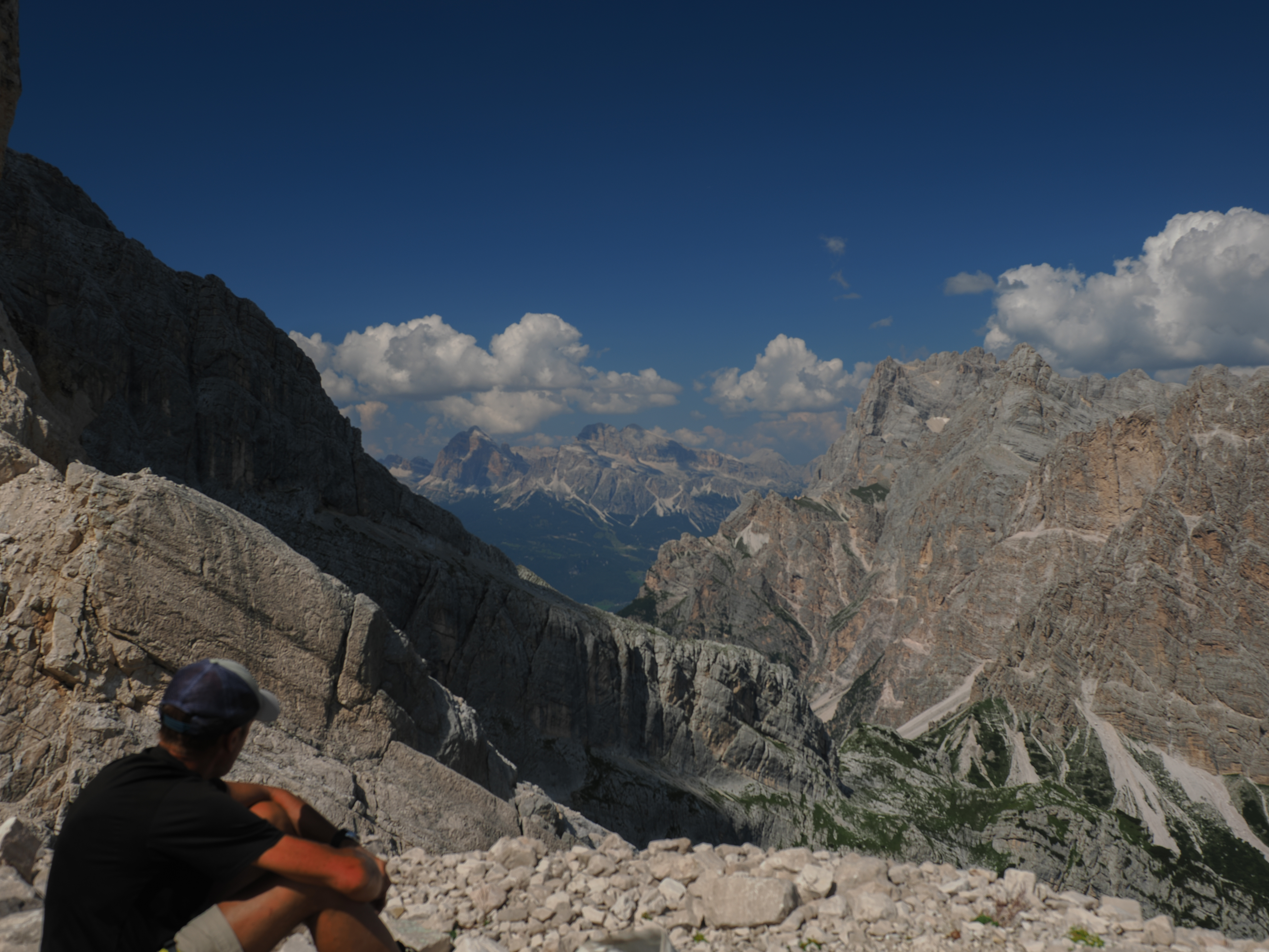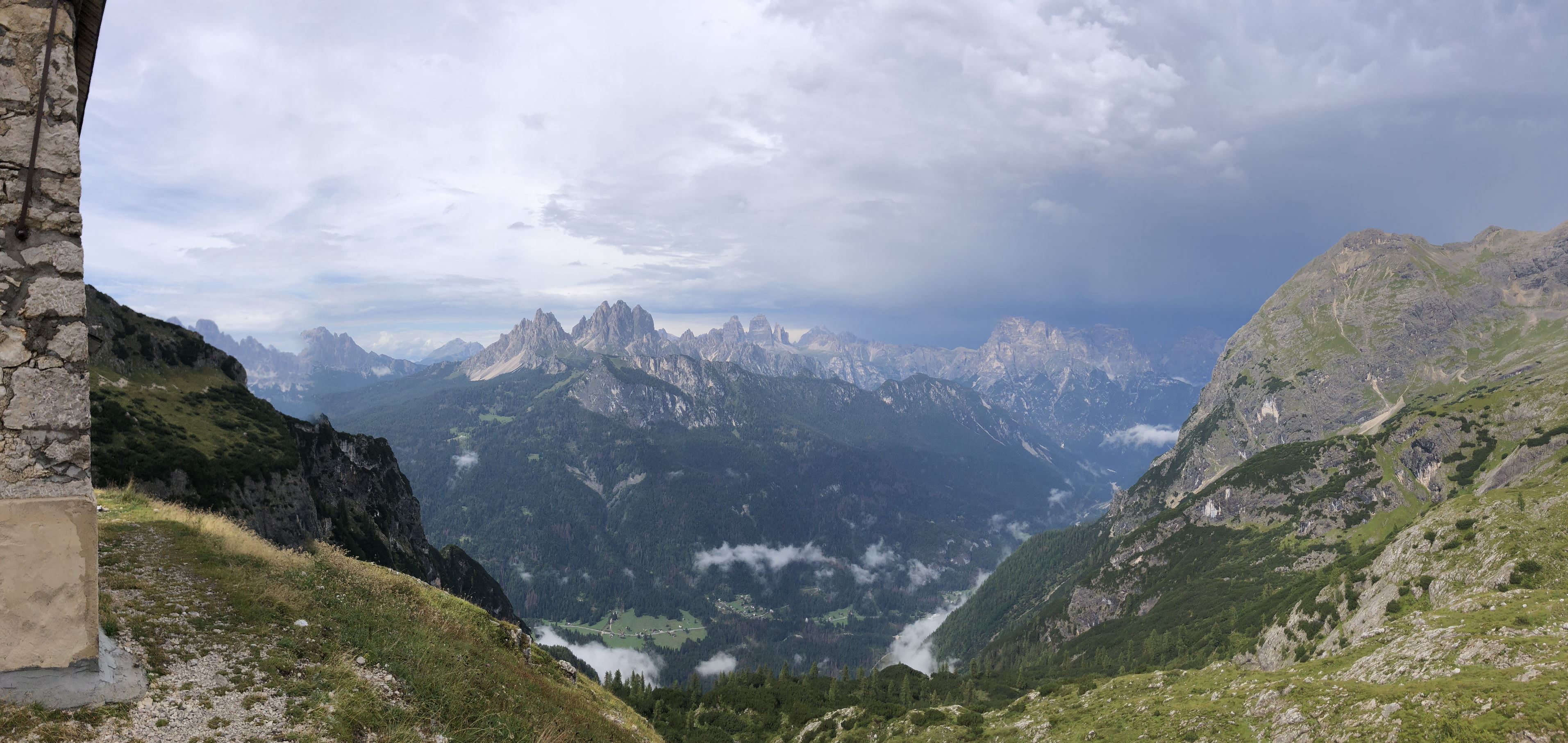 We slept like rocks in an otherwise empty room. The past two days had been longer and harder than any in the preceeding three weeks, so the good night's sleep was welcome. Today would be the real challenge. We would begin our passge of Marmarole: a series of peaks that rise to nearly 3,000 meters and are the soul of the Alta Via 5. The path, known as the Strada Sanmarchi, is wild and complex, and the terrain requires concentration - in places extremely exposed and unequipped . Knowing we would need a good breakfast, we waited for a real one, forgoing the snacks laid out for the early birds and brooded over the possibility of afternoon storms.