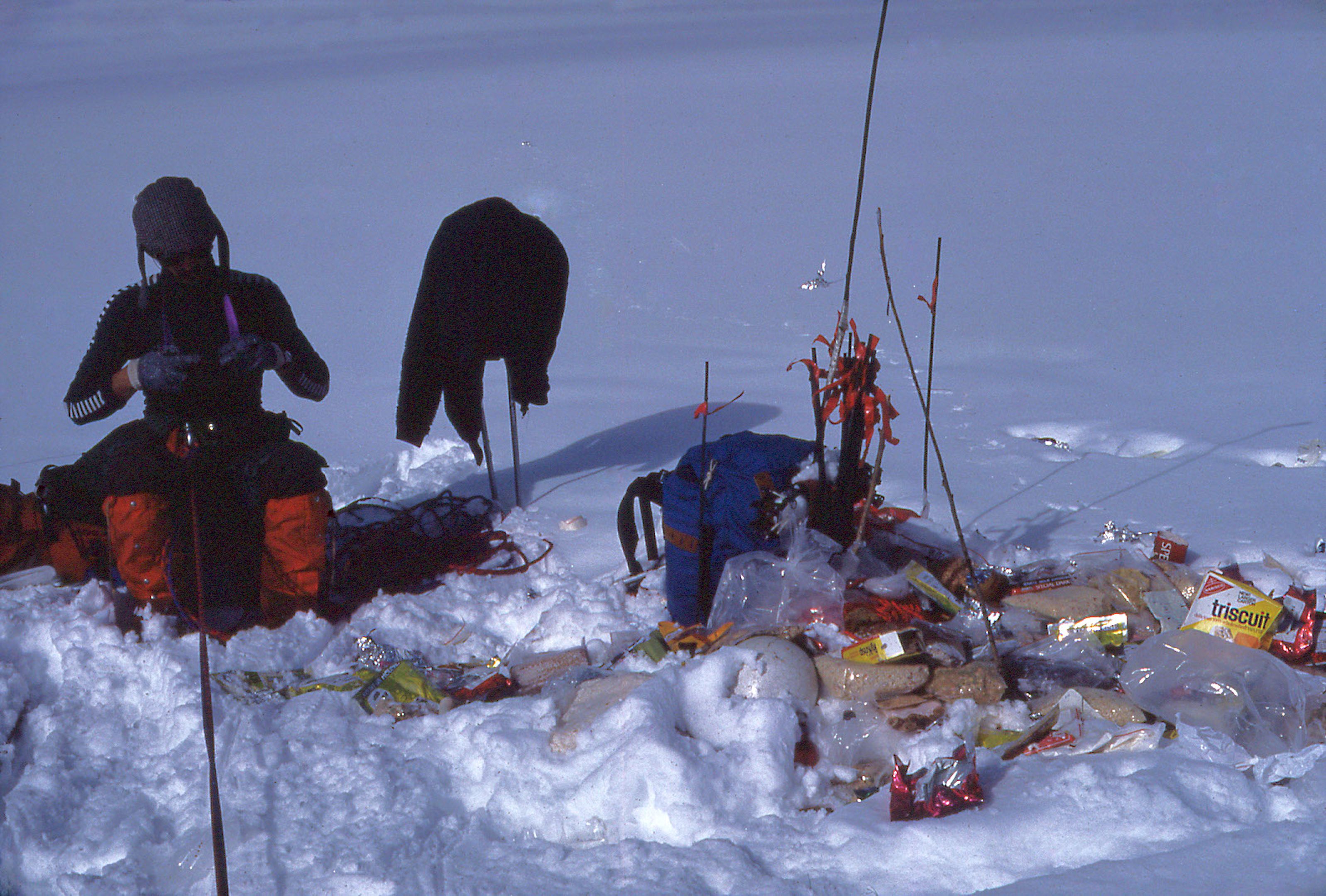 Three philosophers. Hugh, Ren and Keith waiting out the storm - 18,500 ft.