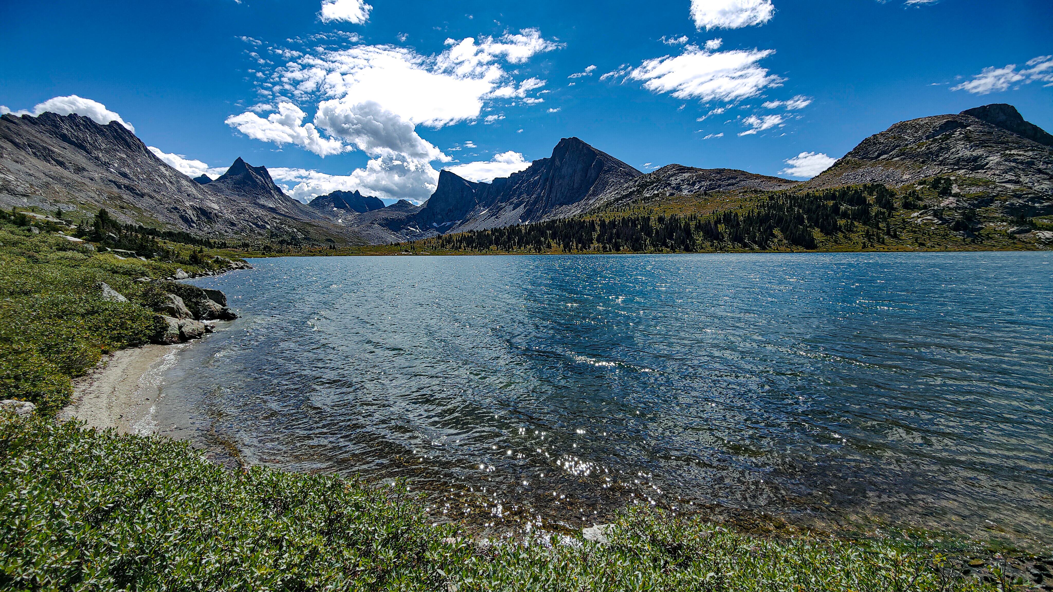 The Wind River High Route, Haute Route or Highway is a north-south route in the Wind River Range of western Wyoming that closely follows the Continental Divide for about 90 miles. It is widely considered to be the finest non-technical distance walk in the United States. The Wind River Range is a roughly 100 by 40 mile uplift containing over 150 distinct granitic peaks, of which 37 exceed 4000 meters, extensive glaciers and hundreds of lakes. Upon reaching 3000 meters, the route remains above that elevation for its entirety. About 2/3 of the route is off the established trail system and typically takes 7 to 10 days to complete. There are two popular flavors and a number of variations of the route first completed by Alan Dixon and Don Wilson in 2013. They walked from the Green River Lakes trailhead south to Big Sandy Opening, a distance of about 85 miles. A popular alternative to the Wilson-Dixon route is Andrew Skurka's "Complete Wind River High Route", lying between Bruce Bridge near Lander and Trail Lakes near Dubois. The Skurka route is a few miles longer, includes a couple of gratuitous, 13,000+ ft. peaks, and keeps mostly to the east side of the continental divide while the Wilson-Dixon favors the west side. Peak-bagging is an option on both routes. The Skurka route also passes through the Wind River Indian Reservation which requires a permit that can be most conveniently puchased at the tribal headquarters in Fort Washakie, but that stage (from Photo Pass to Europe Pass) can easily be bypassed by staying west of the divide. Both routes can be done in either direction but most favor a southern start for the Skurka and a northern start for the Wilson-Dixon. Neither route can claim passage through undiscovered country. Rather, they are ingenious weddings of sections of the range that have most certainly felt the past footsteps of those drawn to the area to explore, survey, plant or catch fish (there are no native fish in the high lakes), and graze sheep and cattle. The open nature of the terrain, particularly in the southern portions of the range, allows for many variations. The section of the Skurka route from Alpine Lakes north is spectacular.