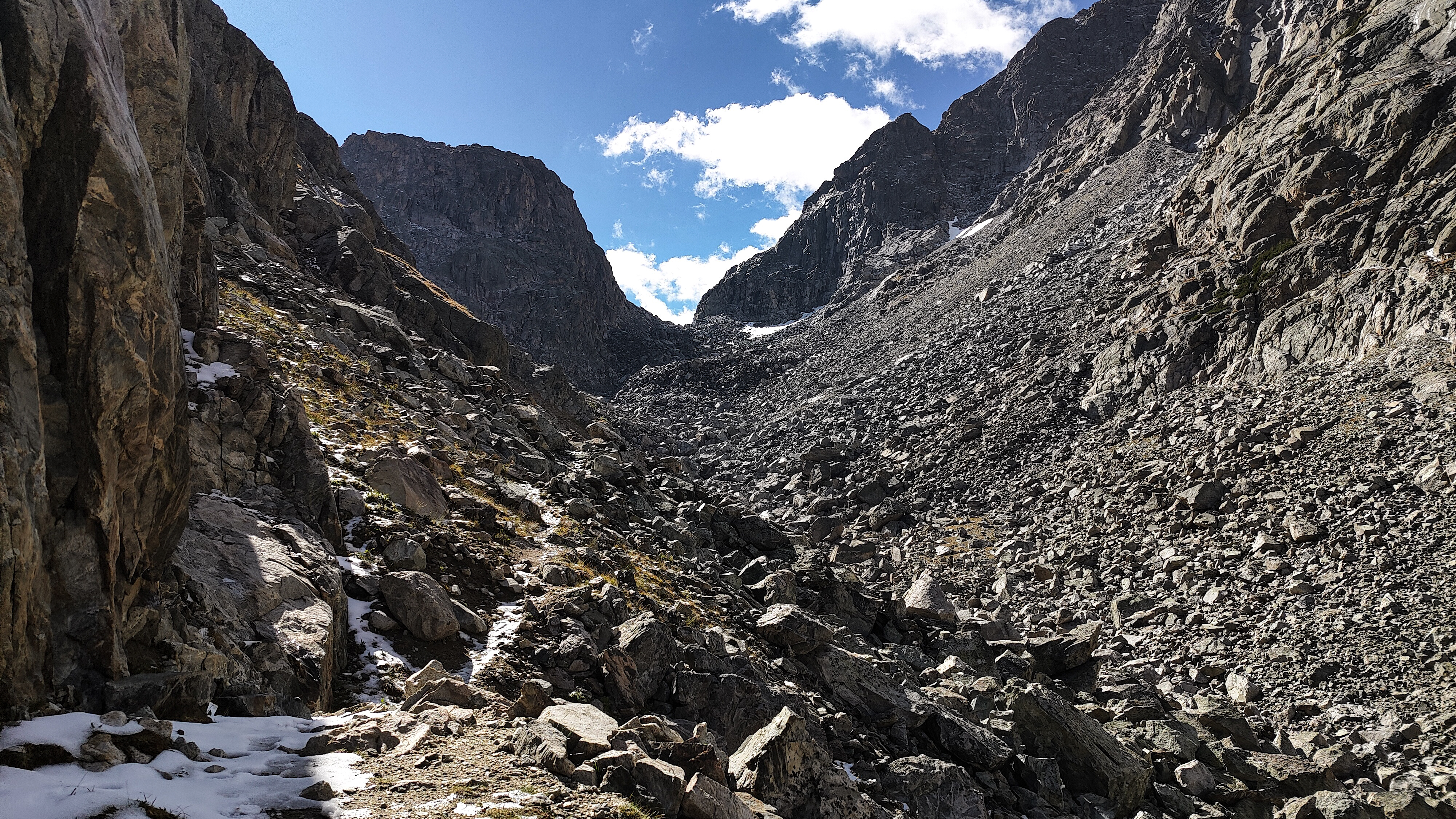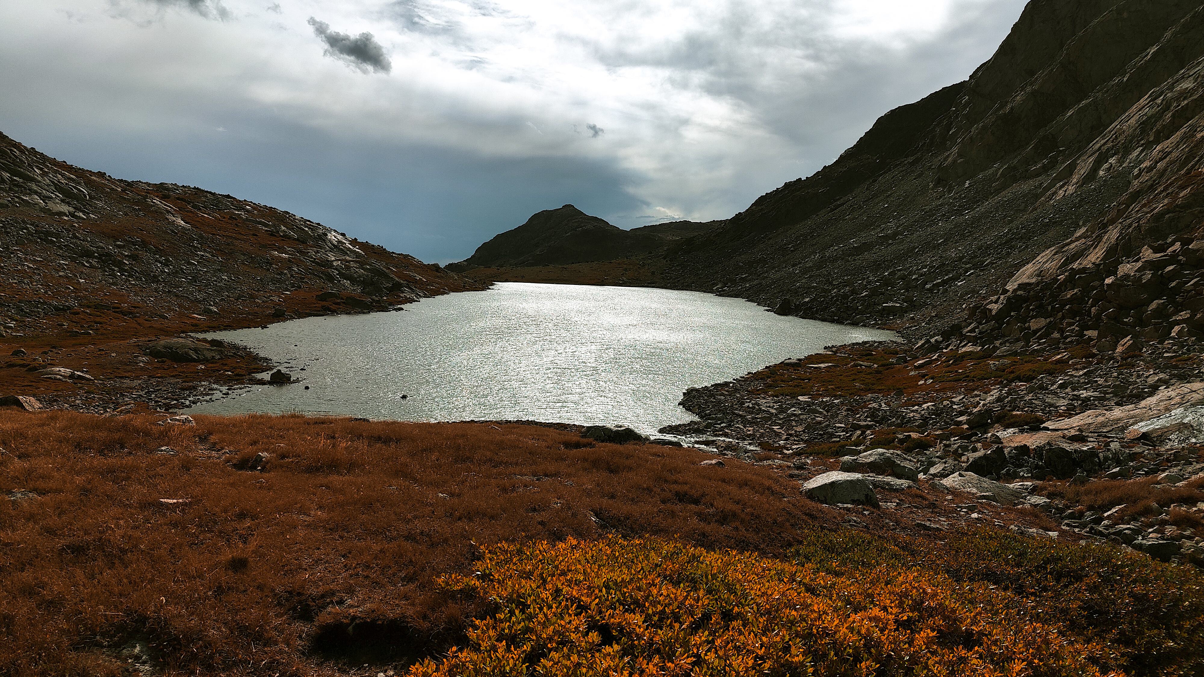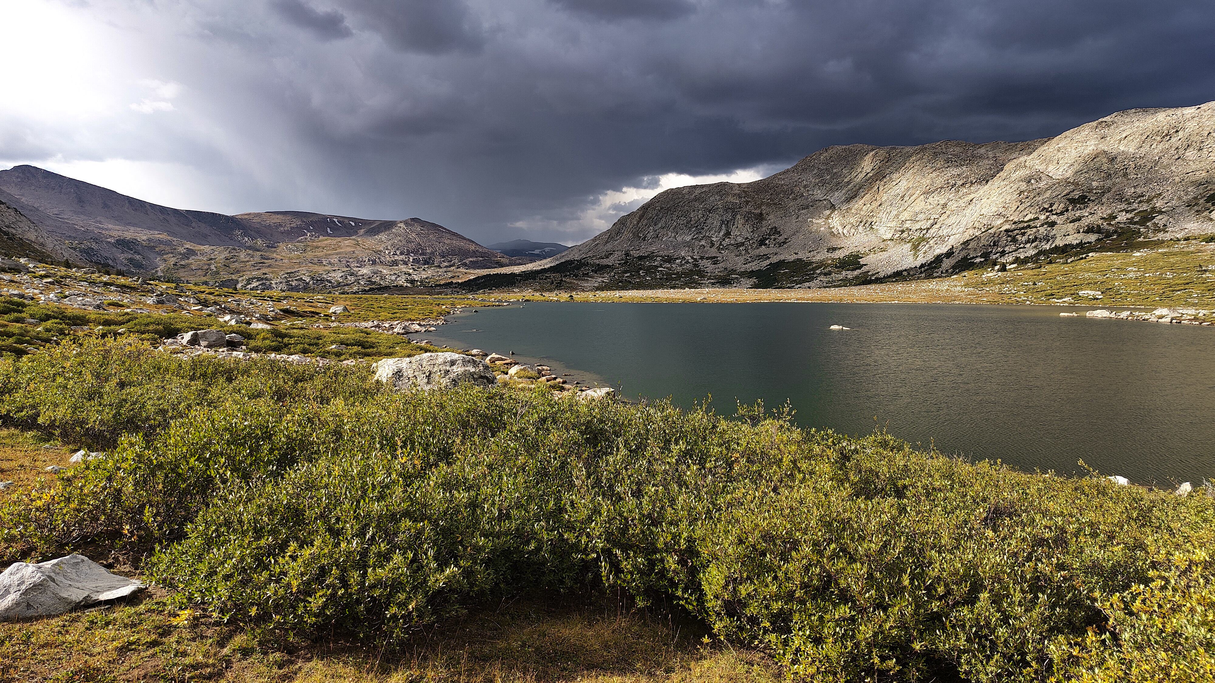 Weather forecasts based on surrounding towns can foretell major changes but they cannot be relied upon to predict localized mountain phenomena like thunderstorms, snowshowers and hail. Even more counfounding, spot forecasts can be wildly misleading. Snow rain and sunshine can all occur simultaneously within a mile or of each other and can change in the space of minutes. This is particularly true of thunderstorms. Add to the mix elevation and the proximity to the Continental Divide, in places exceeding 4000 meters, and you have the true definition of a WAG when it comes to weather forecasts. The expansive and often featureless nature of higher terrain also makes lightning unpredictable. On the high ridges and particularly along the divide, beware. Know the closest route to lower ground and watch the weather. Electrical storms can literally materialize from nowhere in a matter of minutes and move quickly, paradoxically often in the direction you are retreating. As a last resort, when everything is buzzing and your hair is standing on end, separate yourself from your pack and poles, lie flat and pray or curse, whichever is most appropriate for you. There is no season immune from major weather events, but fall is most notorious for delivering foot-deep overnight snow storms. It is common for a mid to late October storm to end the hiking season.